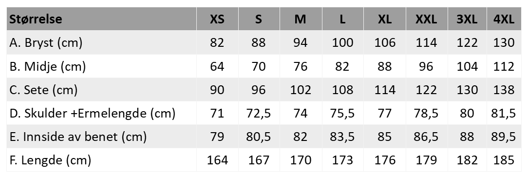 Størrelse S, M, L, XL